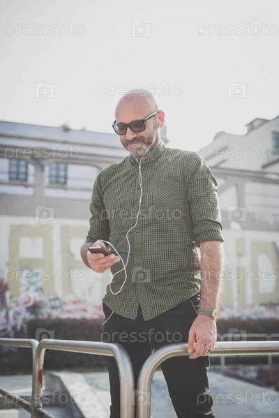 Мужчина среднего возраста слушает музыку