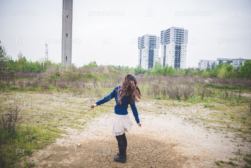 Красивая женщина на пустыре