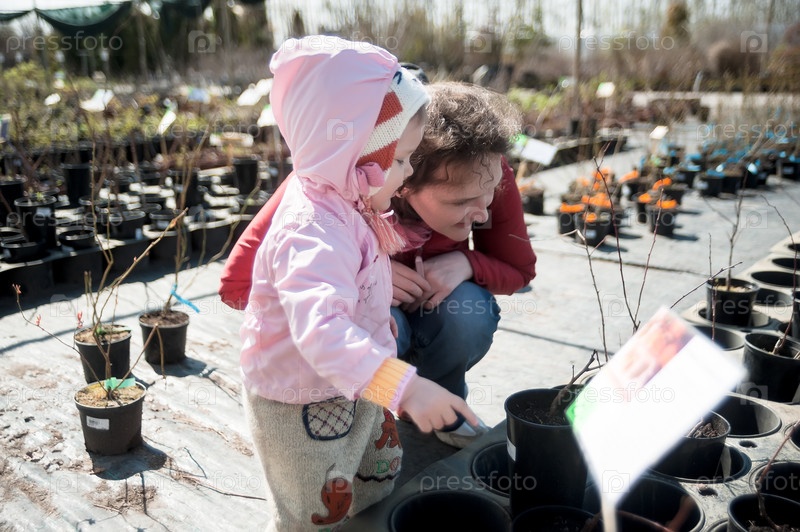 Семья покупает саженцы