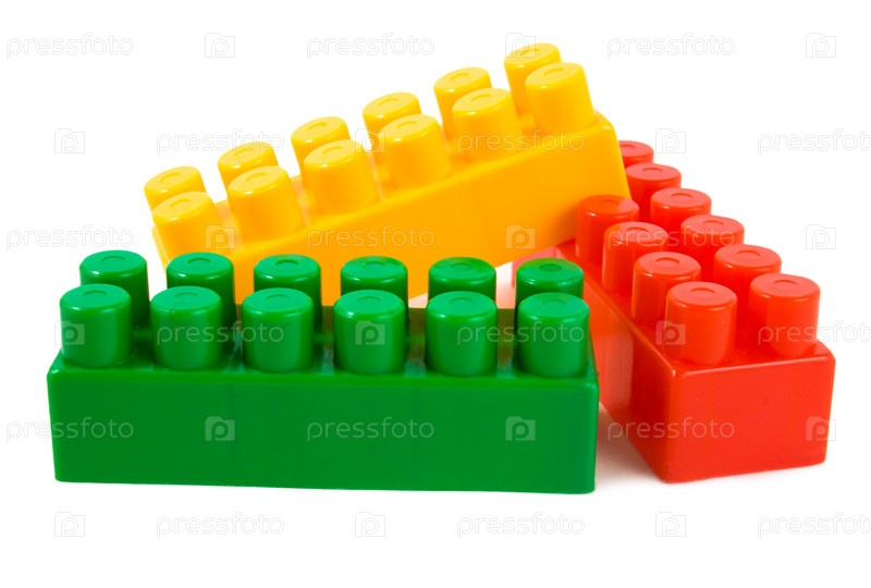 Разноцветные блоки конструктора, изолированы на белом фоне