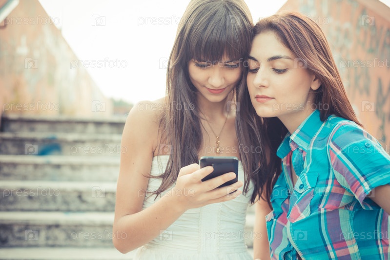Красивые молодые женщины с телефоном