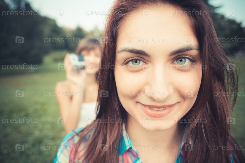 Две молодые женщины в городе