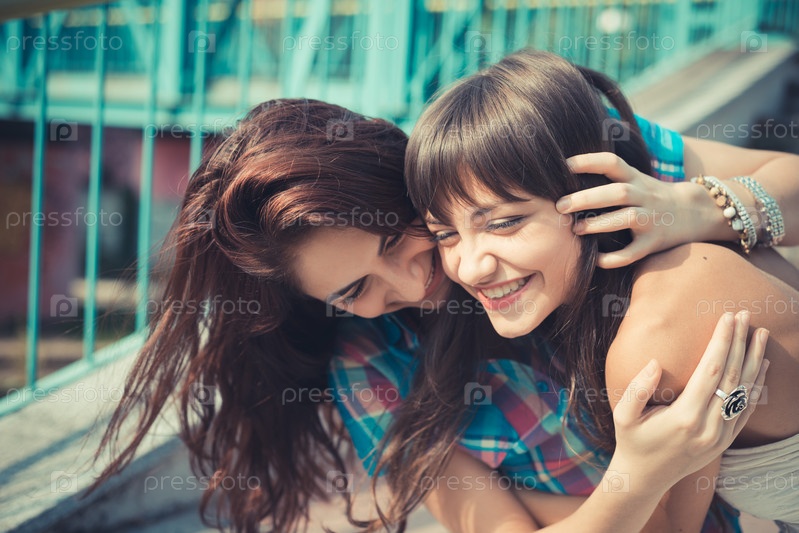 Две молодые женщины в городе