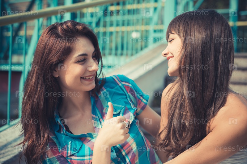 Две молодые женщины в городе