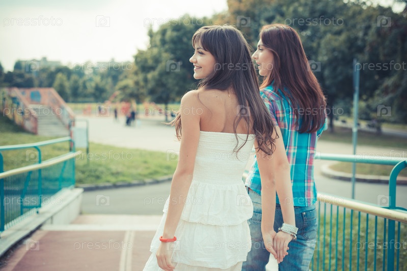 Две молодые женщины в городе
