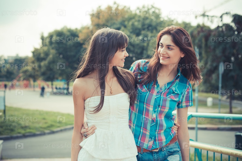 Две молодые женщины в городе