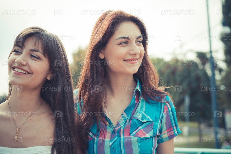 Две молодые женщины в городе