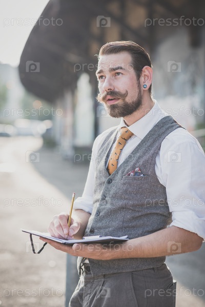 Усатый мужчина-хипстер