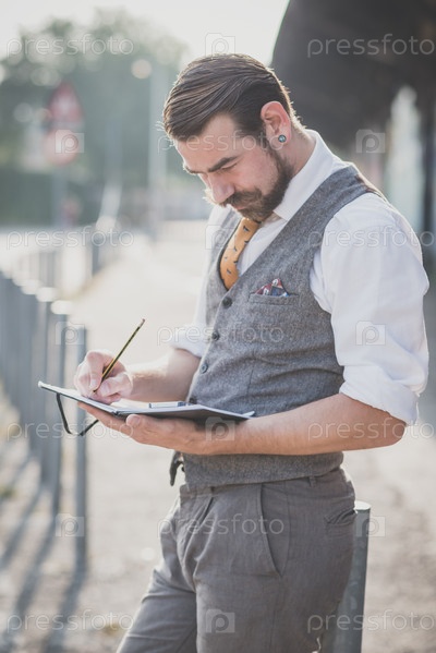 Красивый усатый мужчина-хипстер