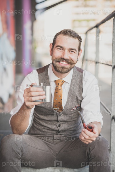Красивый усатый мужчина-хипстер