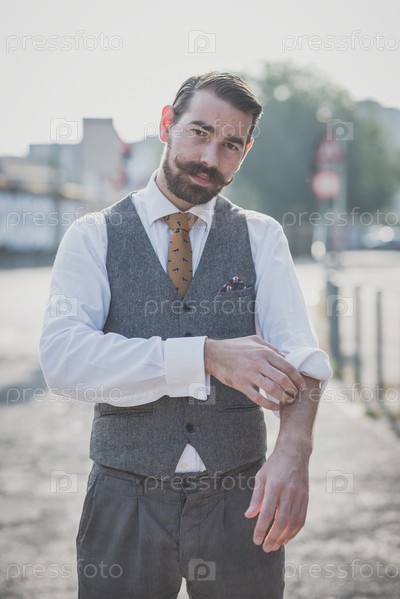 Красивый усатый мужчина-хипстер