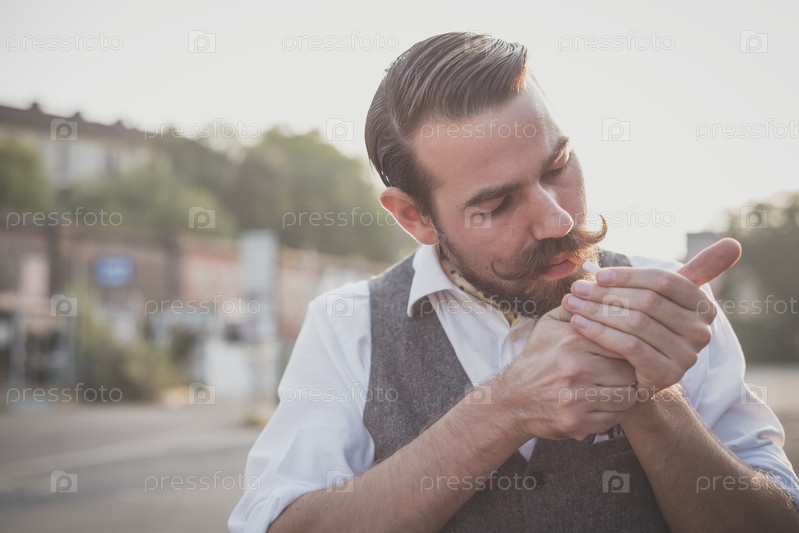 Красивый усатый мужчина-хипстер