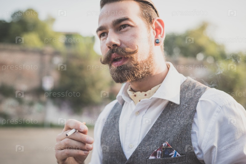 Красивый усатый мужчина-хипстер
