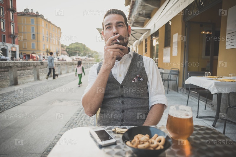 Красивый усатый мужчина-хипстер
