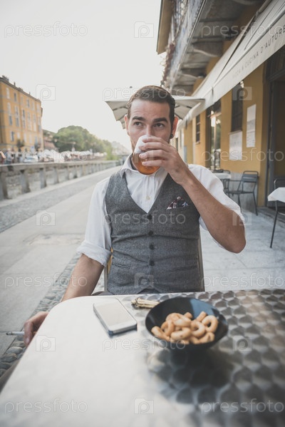 Красивый усатый мужчина-хипстер