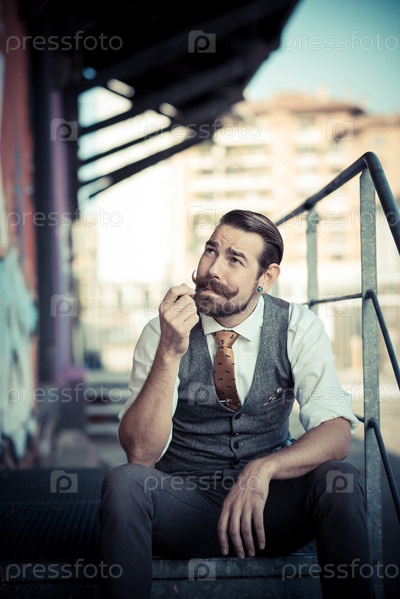 Красивый усатый мужчина-хипстер