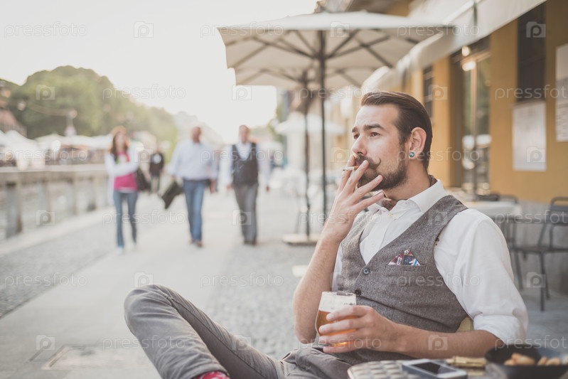 Красивый усатый мужчина-хипстер
