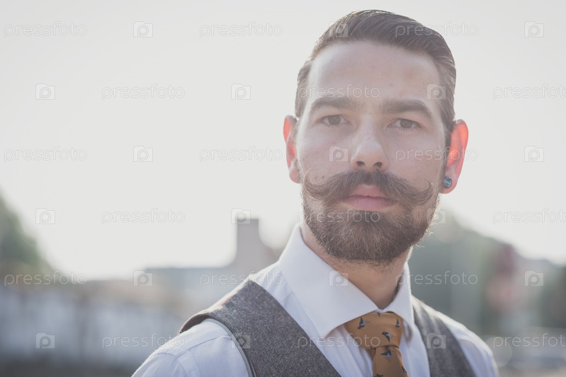 Красивый усатый мужчина-хипстер