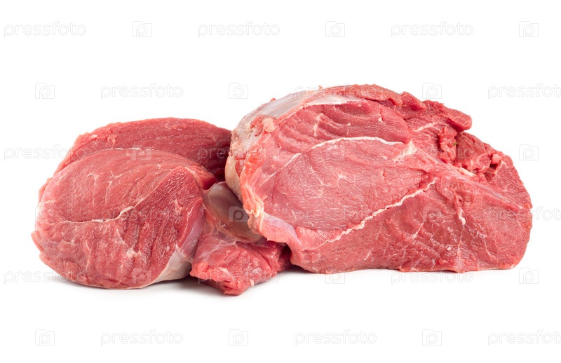 Куски свежего мяса на белом фоне
