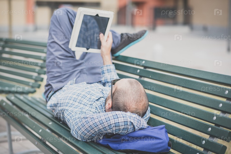 Красивый молодой мужчина-хипстер с планшетом