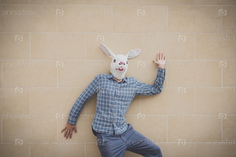 Человек в маске кролика