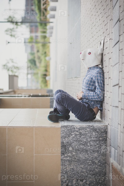 Человек в маске кролика