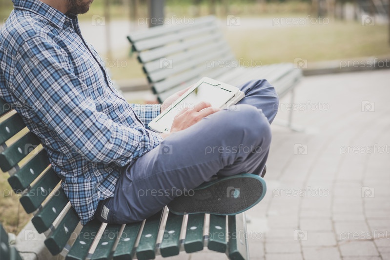 Красивый молодой мужчина-хипстер с планшетом