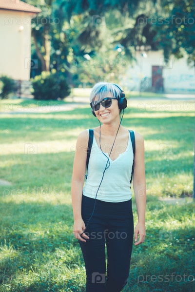 Молодая женщина-хипстер с наушниками