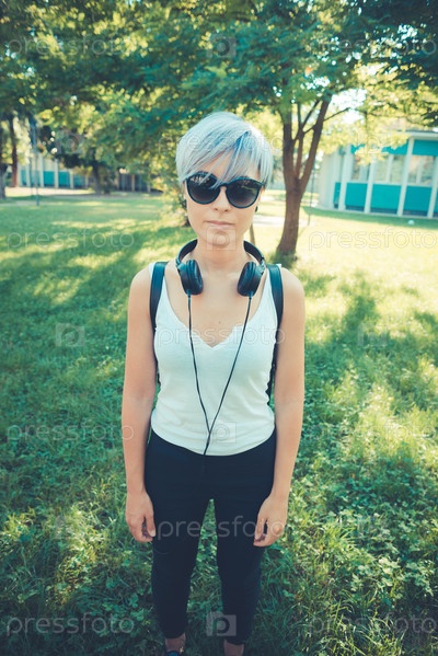 Молодая женщина-хипстер с наушниками