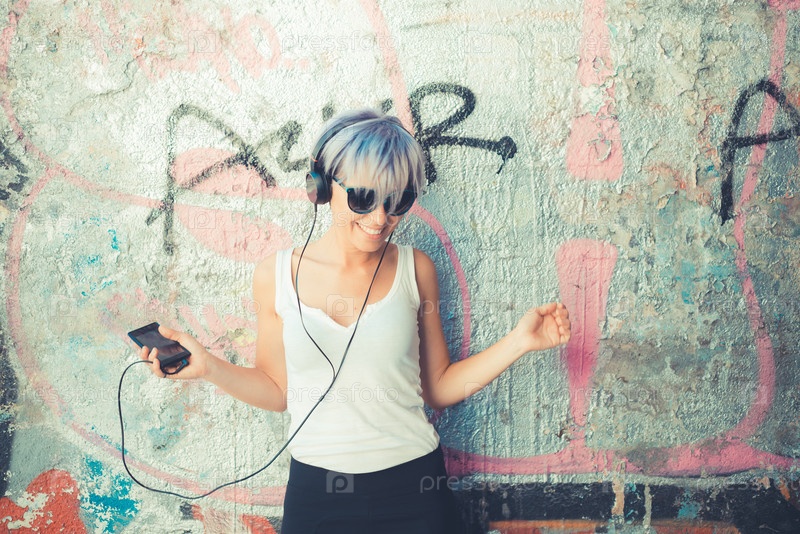 Молодая женщина-хипстер с наушниками