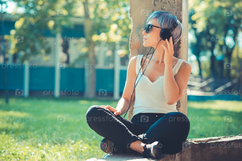 Молодая женщина-хипстер с наушниками