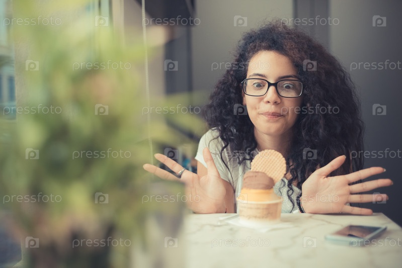 Молодая красивая женщина в кафе