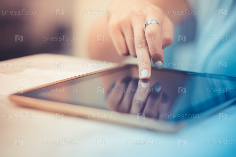 Руки женщины с планшетом