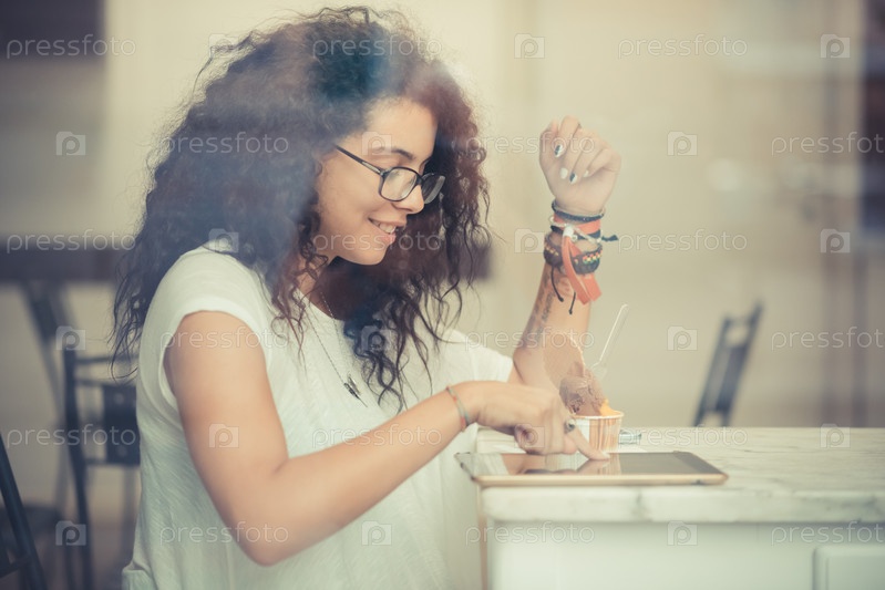 Молодая красивая женщина в кафе