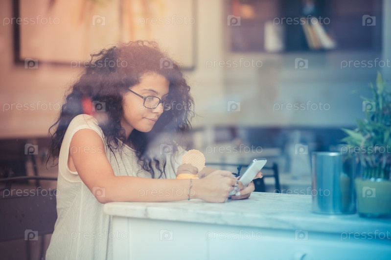 Молодая красивая женщина в кафе