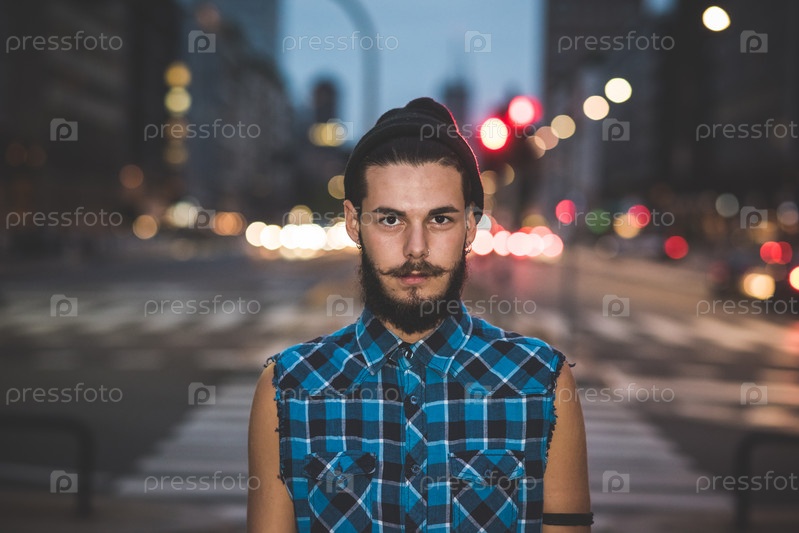 Молодой красивый хипстер в городе