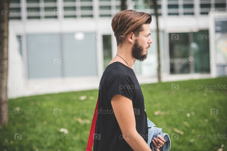 Молодой красивый хипстер в городе