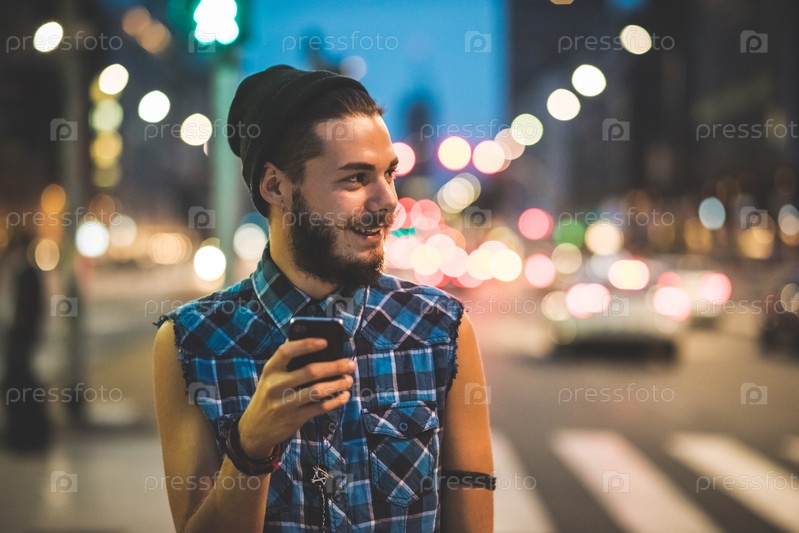 Молодой красивый хипстер в городе