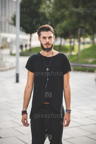 Молодой красивый хипстер в городе