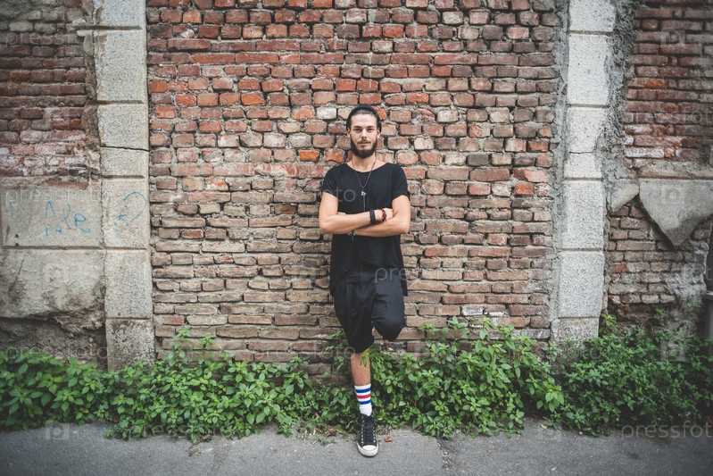 Молодой красивый хипстер в городе