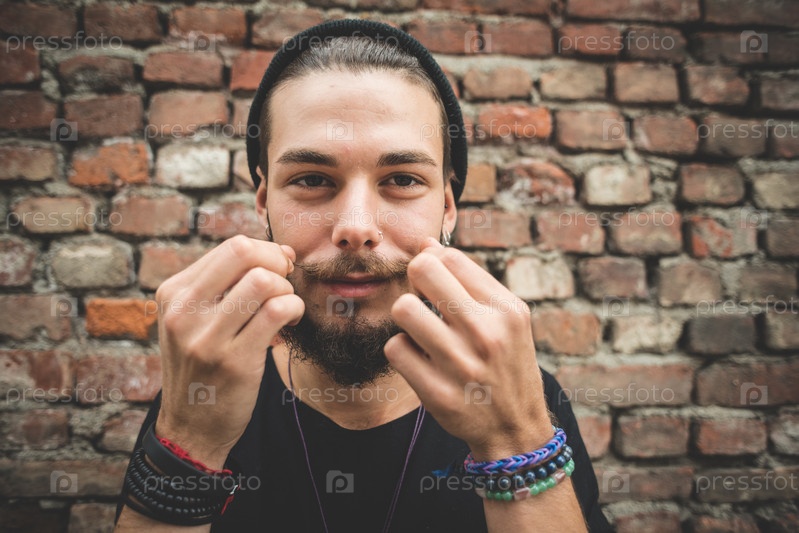 Молодой красивый хипстер в городе