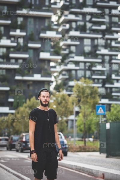 Молодой красивый хипстер в городе