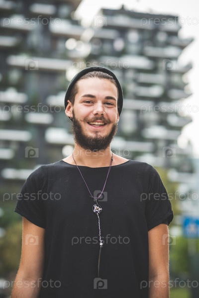 Молодой красивый хипстер в городе