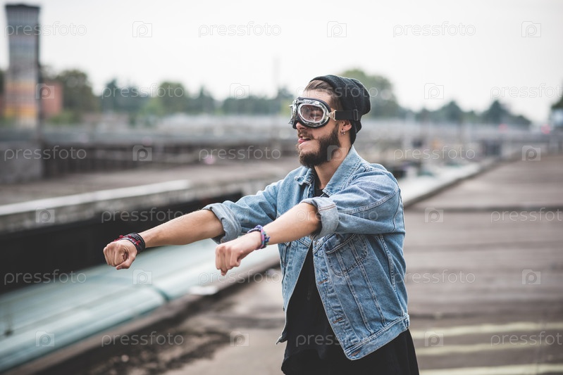 Молодой красивый хипстер в городе