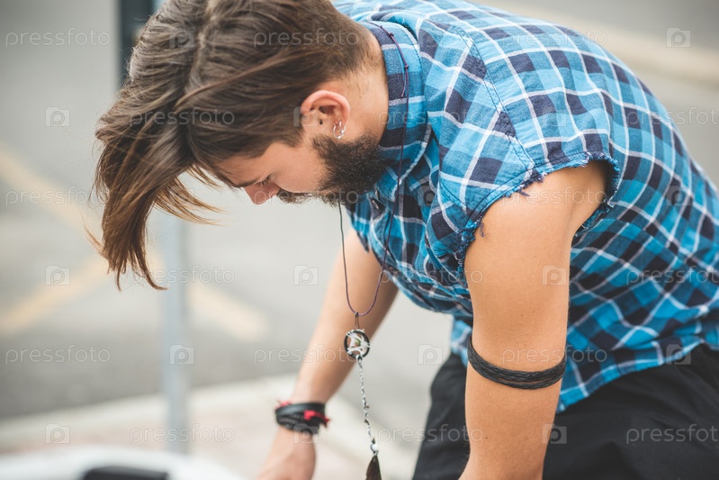 Молодой красивый бородатый мужчина-хипстер