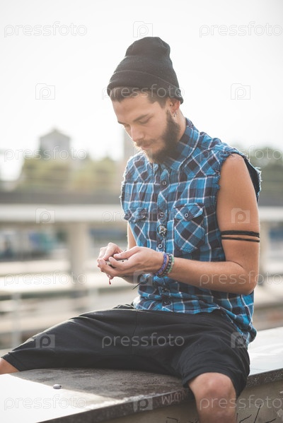 Молодой красивый бородатый мужчина-хипстер