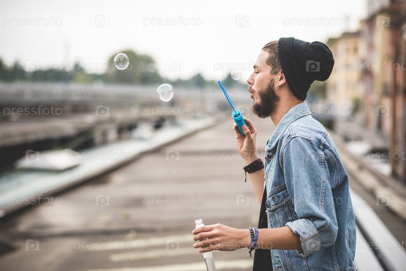 Молодой красивый бородатый мужчина-хипстер