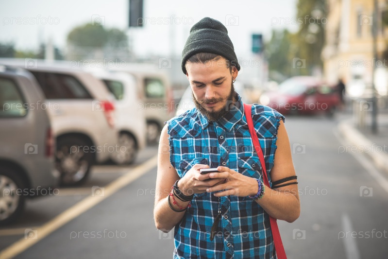 Молодой красивый бородатый мужчина-хипстер