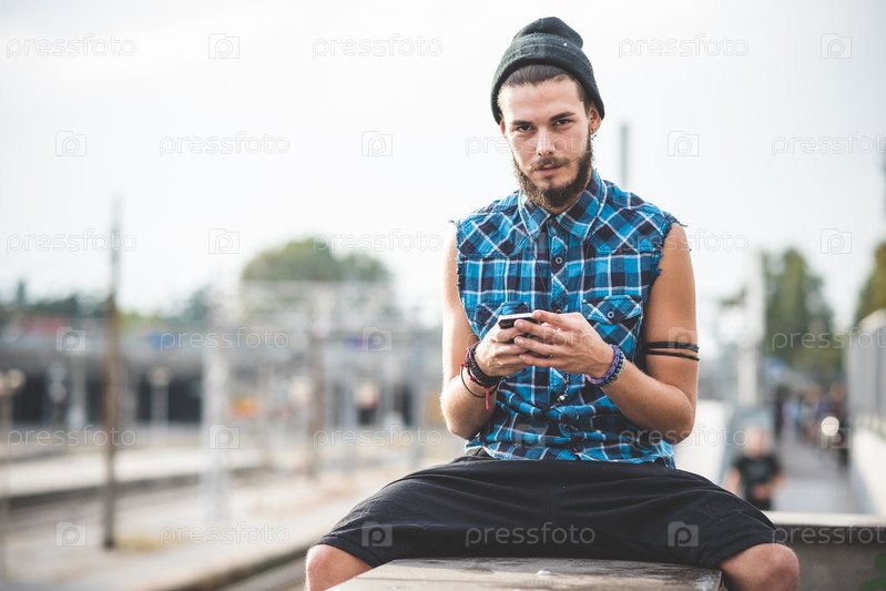 Молодой красивый бородатый мужчина-хипстер