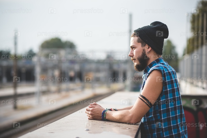 Молодой красивый бородатый мужчина-хипстер